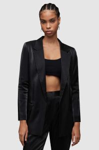 Піджак AllSaints Aleida колір чорний без застібки однотонний