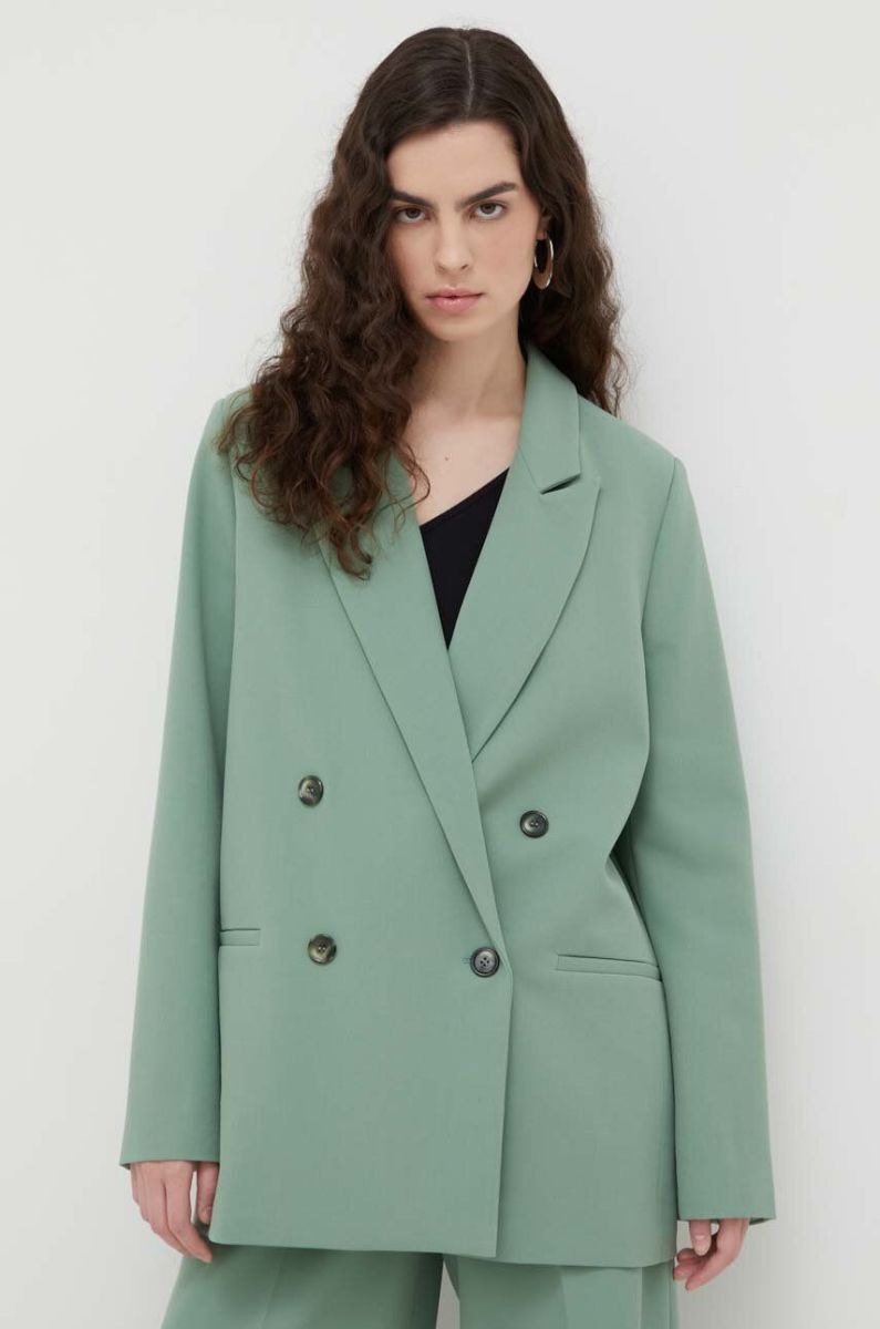 Піджак Lovechild Arizona колір зелений двобортний однотонний