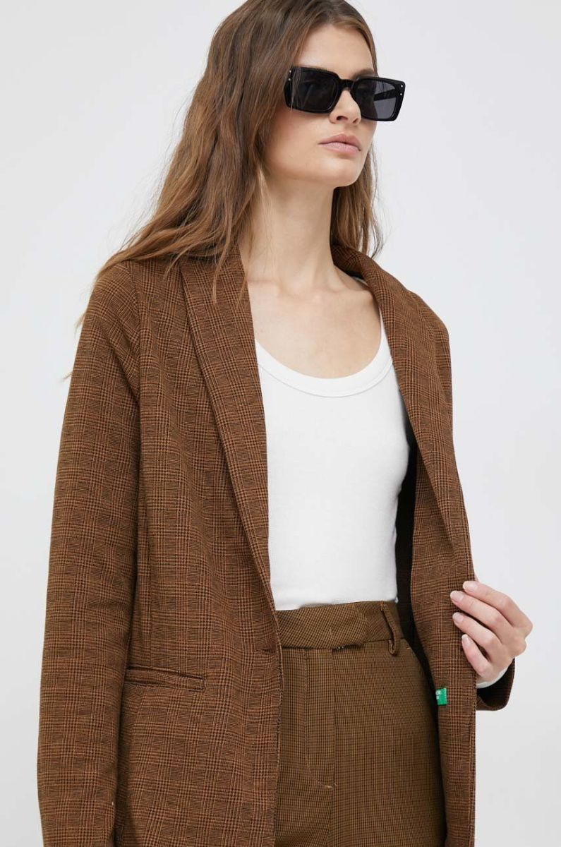 Піджак United Colors of Benetton колір коричневий однобортний візерунок