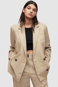 Піджак з домішкою льону AllSaints колір бежевий oversize однотонна
