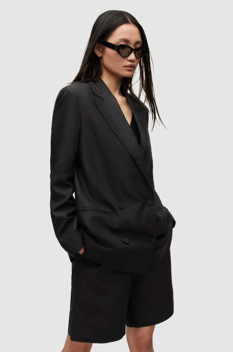 Піджак з домішкою льону AllSaints колір чорний oversize однотонна