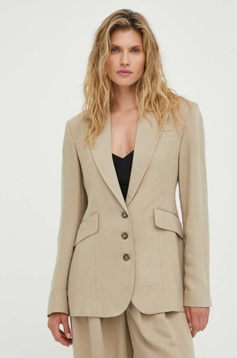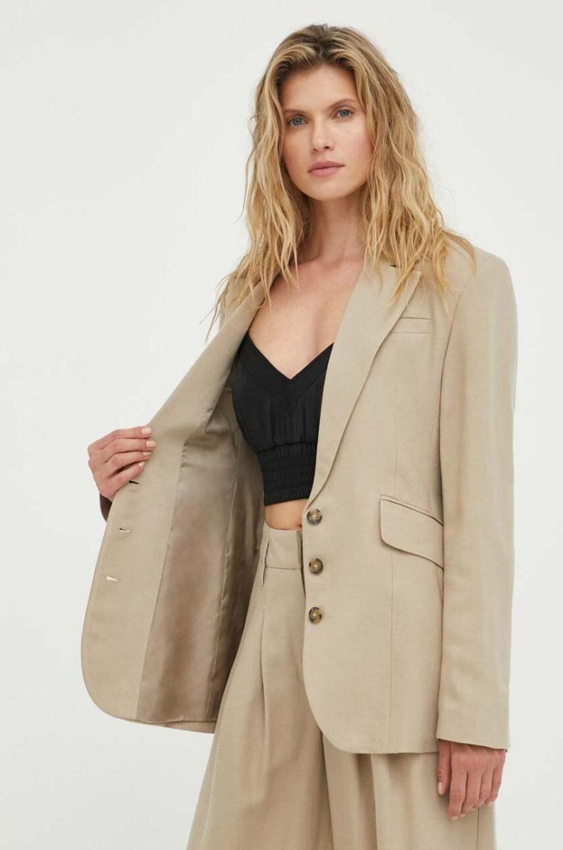 Піджак з домішкою льону Herskind колір бежевий однобортний однотонна (3342252)