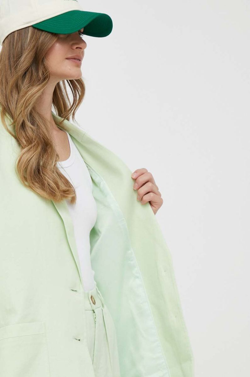 Піджак з домішкою льону Pepe Jeans Mirta колір зелений однобортний однотонний
