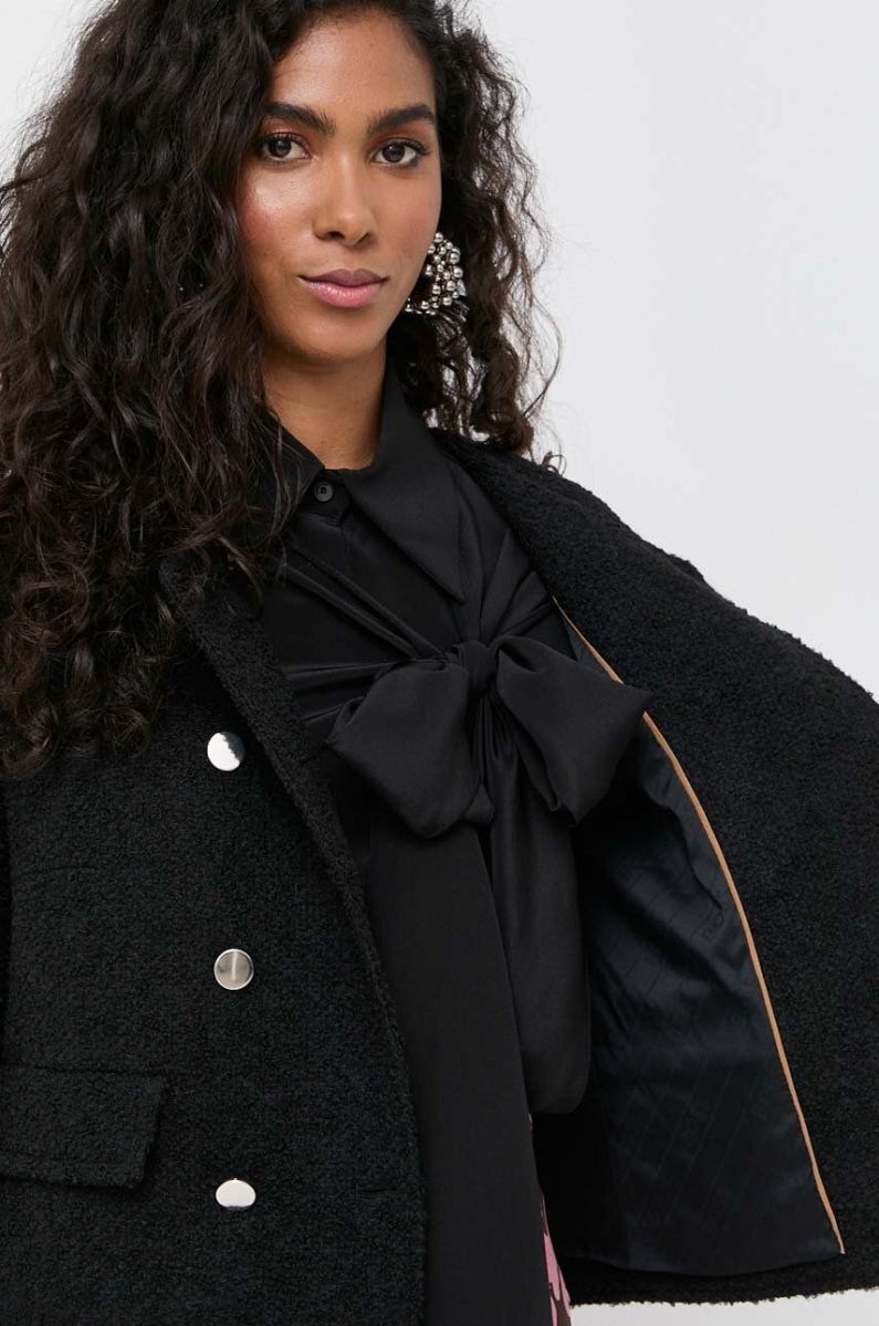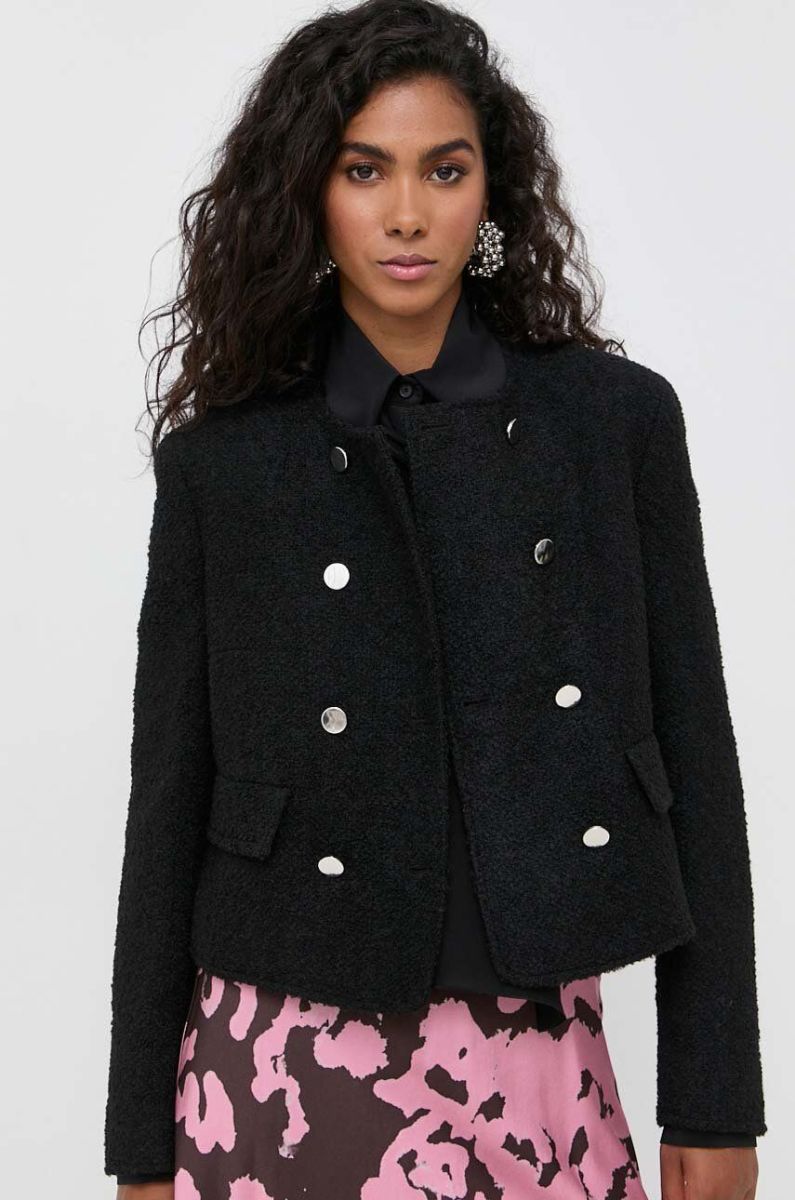 Піджак з домішкою вовни BOSS колір чорний двобортний однотонна