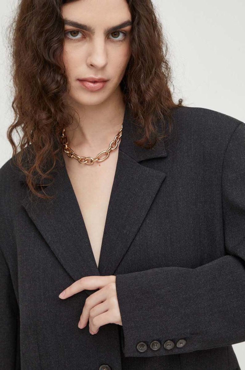 Піджак з домішкою вовни Herskind колір сірий однобортний однотонна (3629923)