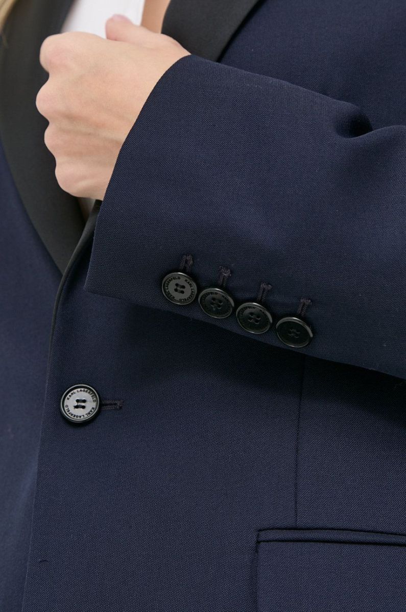 Піджак з домішкою вовни Karl Lagerfeld Karl Lagerfeld x Cara Delevingne колір синій однобортний однотонний