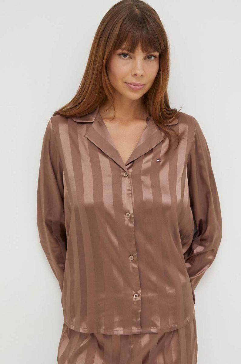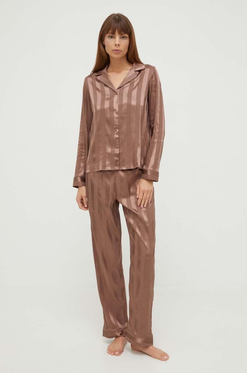 Піжама Tommy Hilfiger жіноча колір коричневий сатин