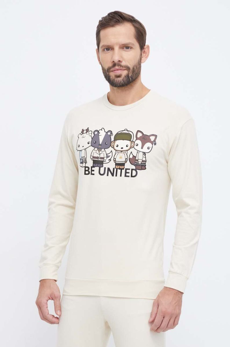 Піжама United Colors of Benetton чоловіча колір бежевий з принтом