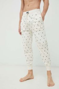 Піжамні бавовняні штани Polo Ralph Lauren колір бежевий візерунок