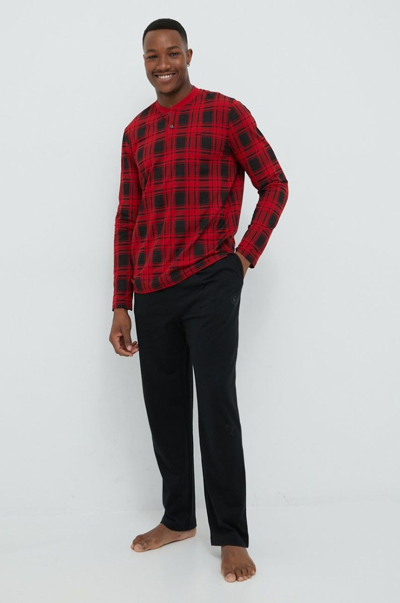 Піжамний бавовняний лонгслів Michael Kors колір червоний візерунок