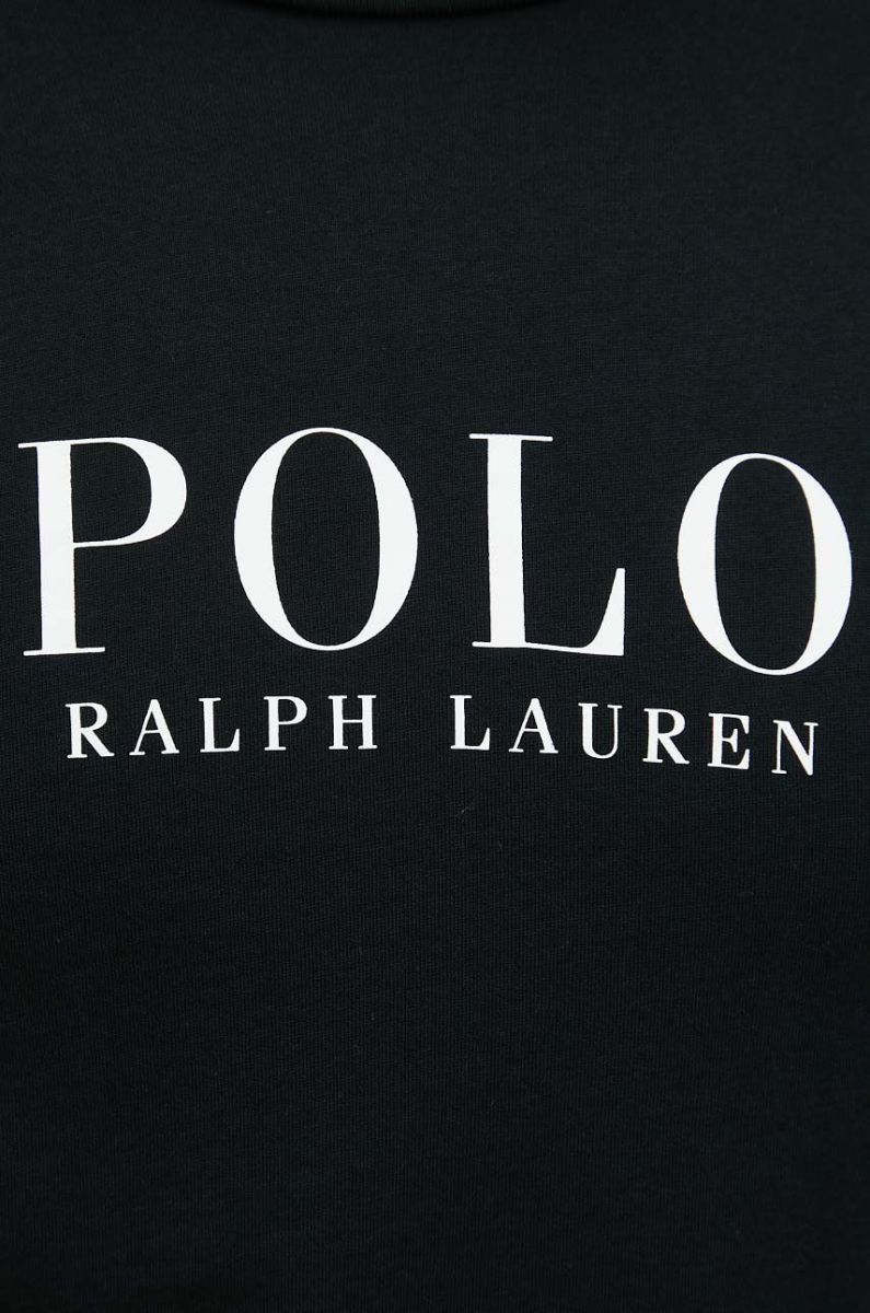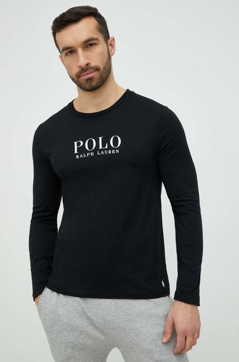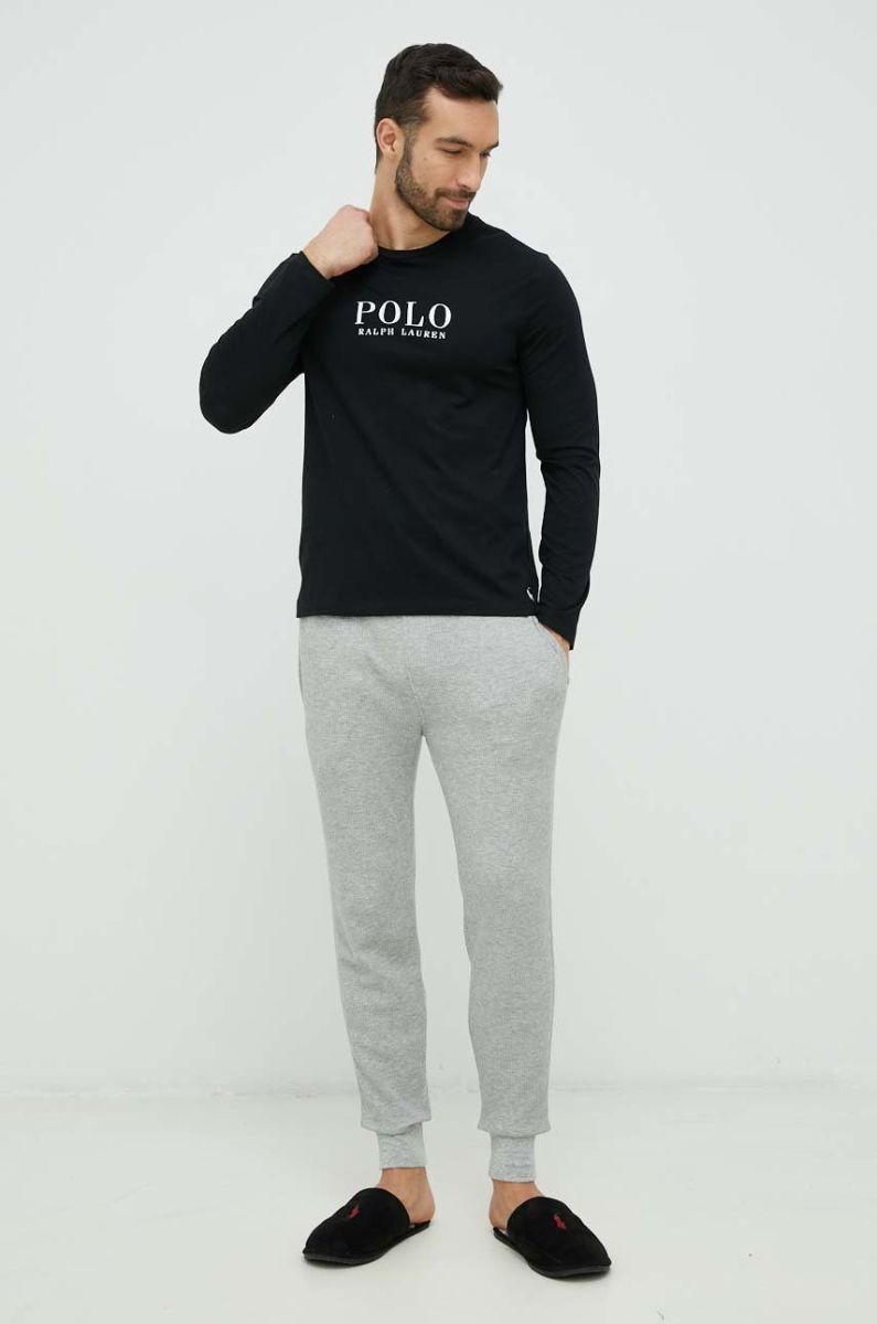 Піжамний бавовняний лонгслів Polo Ralph Lauren колір чорний з принтом