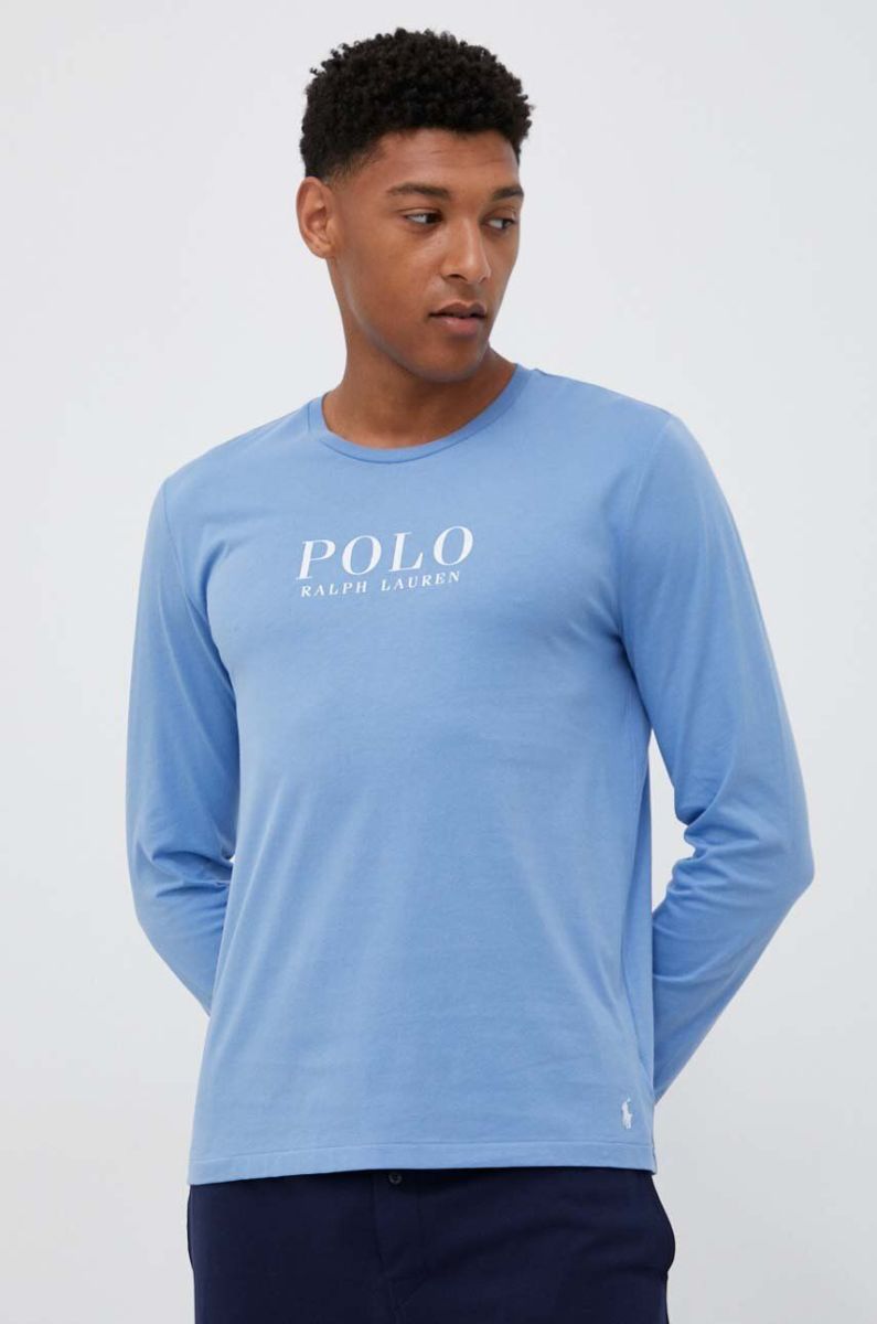 Піжамний бавовняний лонгслів Polo Ralph Lauren з принтом колір блакитний