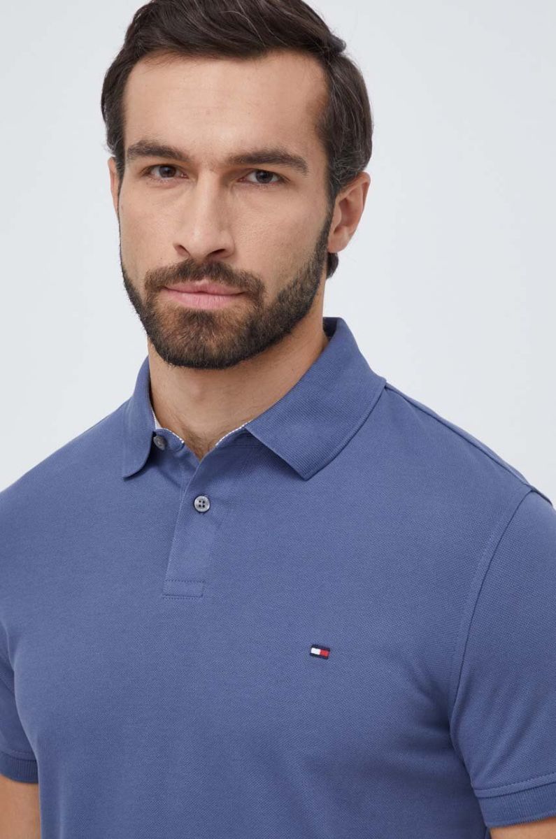 Поло Tommy Hilfiger чоловічий однотонний колір блакитний (3677474)