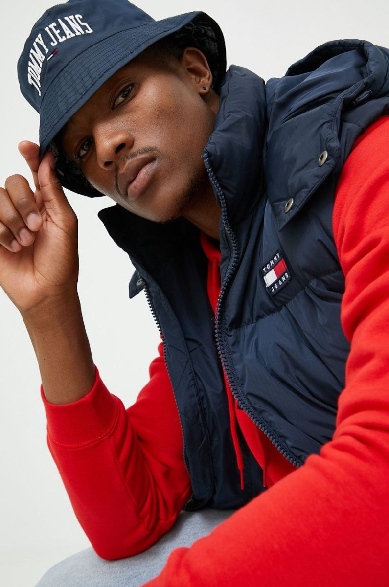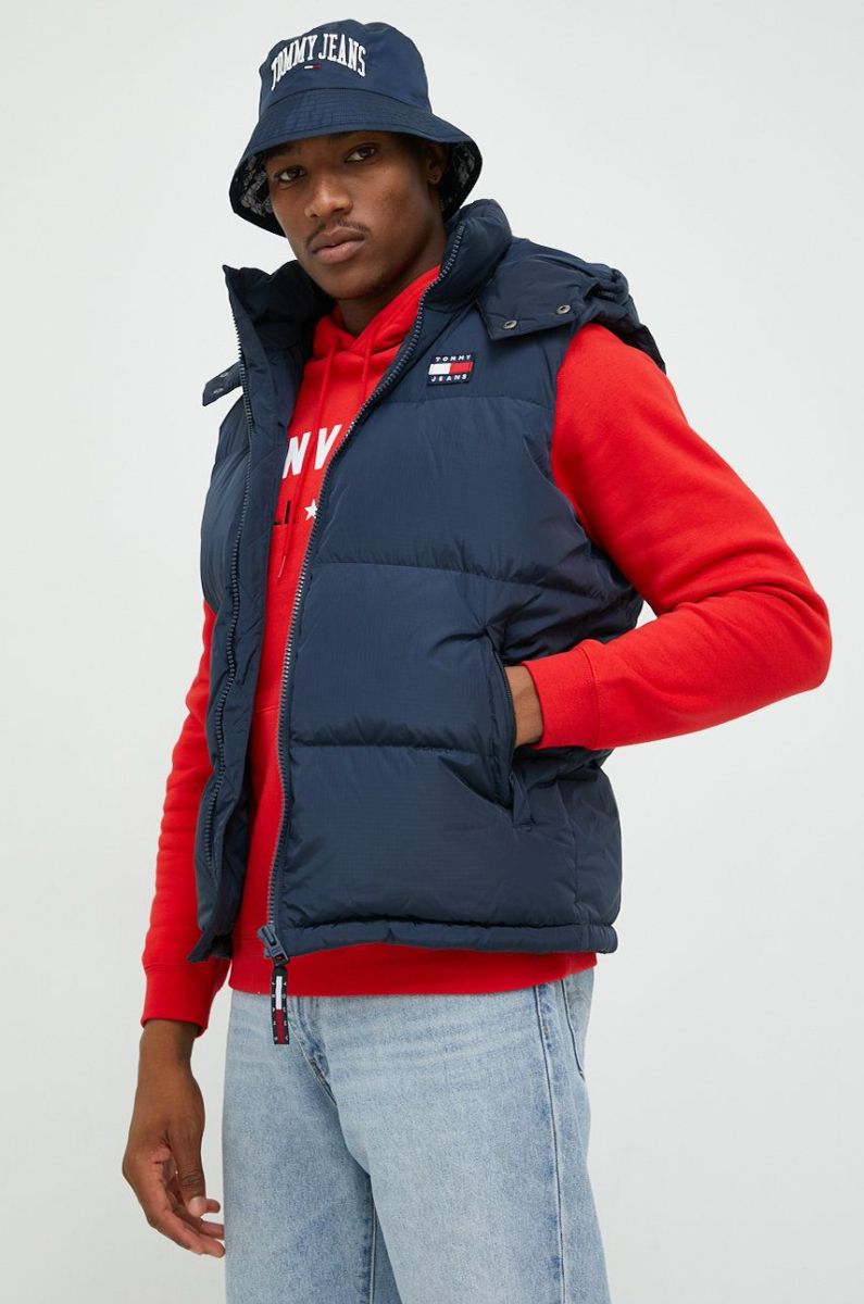 Пухова безрукавка Tommy Jeans чоловічий колір синій зимовий (2613258)