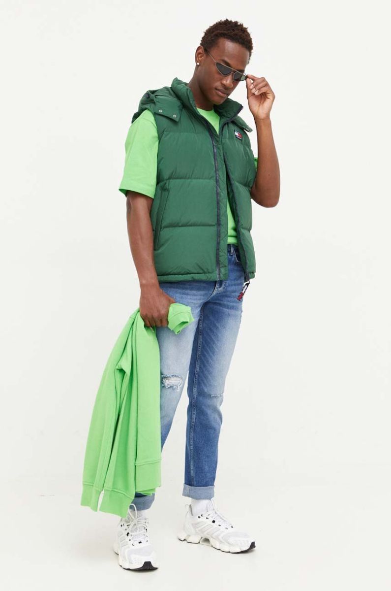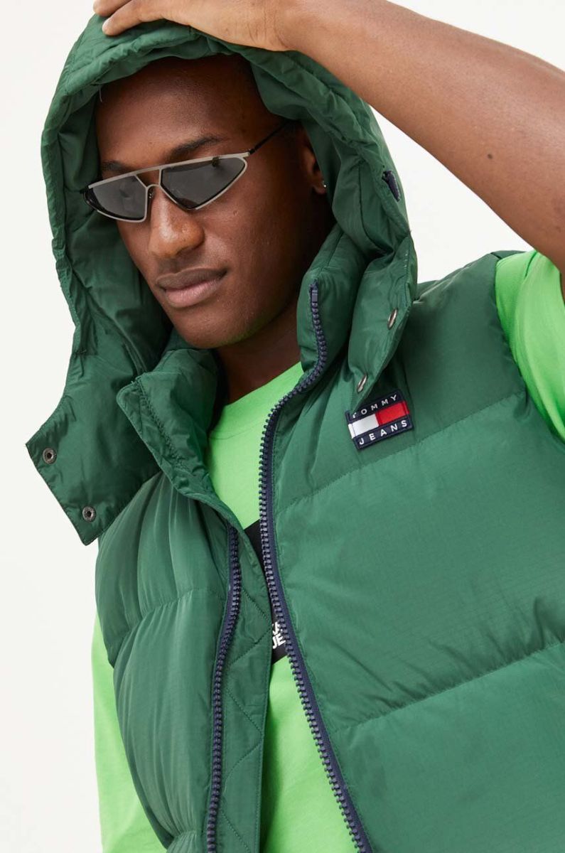 Пухова безрукавка Tommy Jeans чоловічий колір зелений зимовий