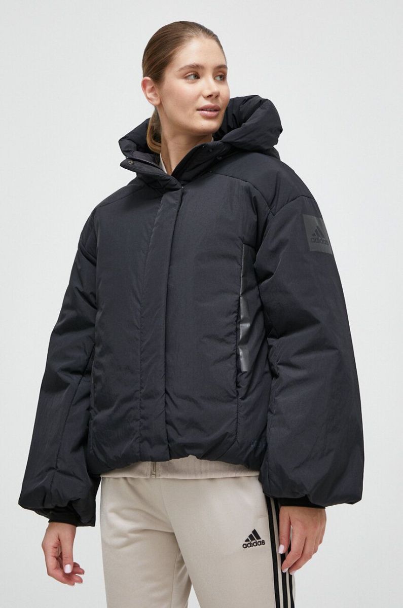 Пухова куртка adidas жіноча колір чорний зимова oversize (3634714)