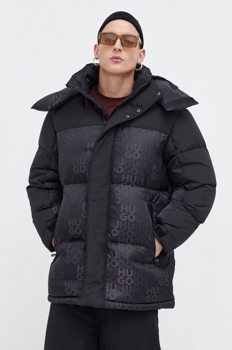 Пухова куртка HUGO чоловіча колір чорний зимова (3681214)