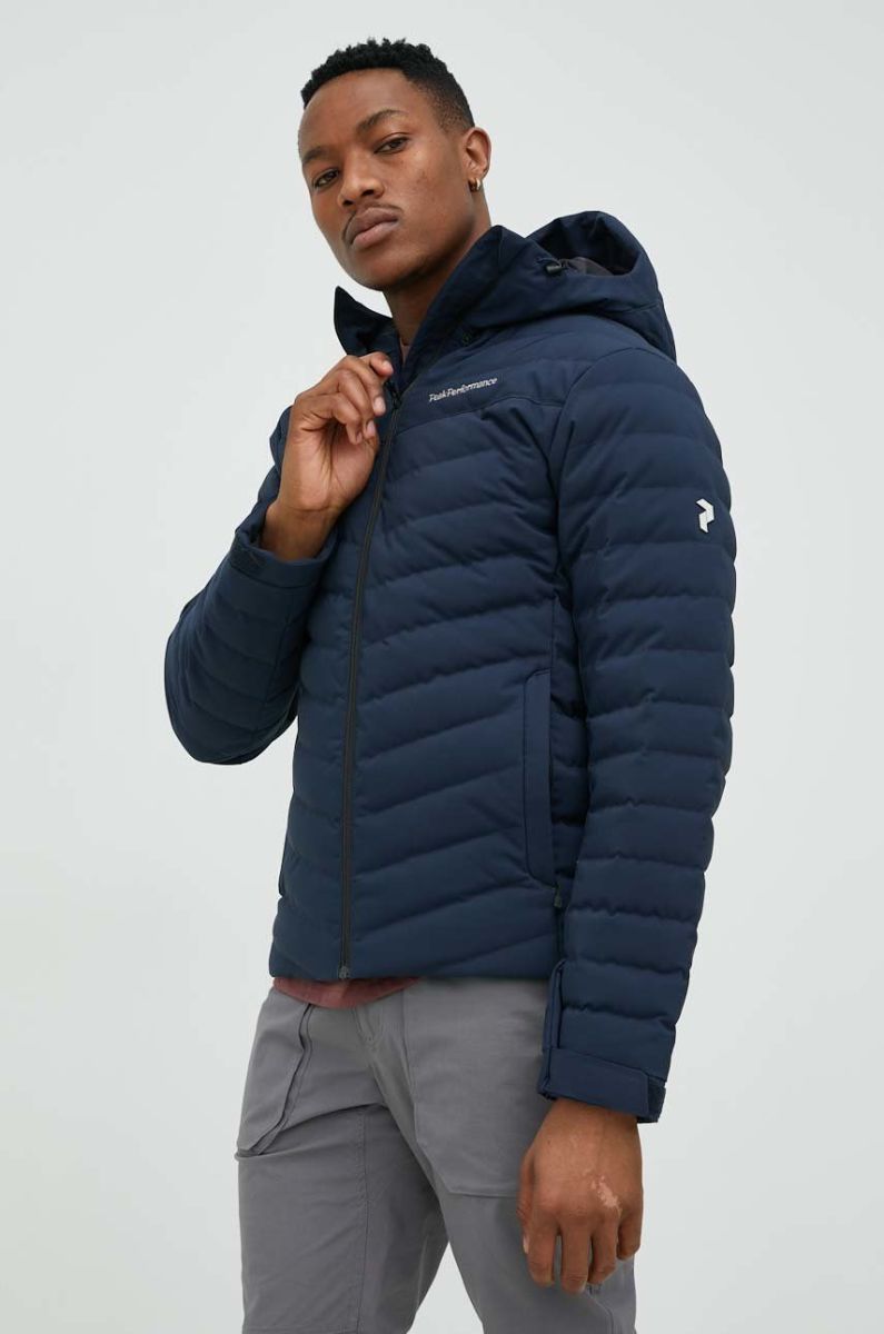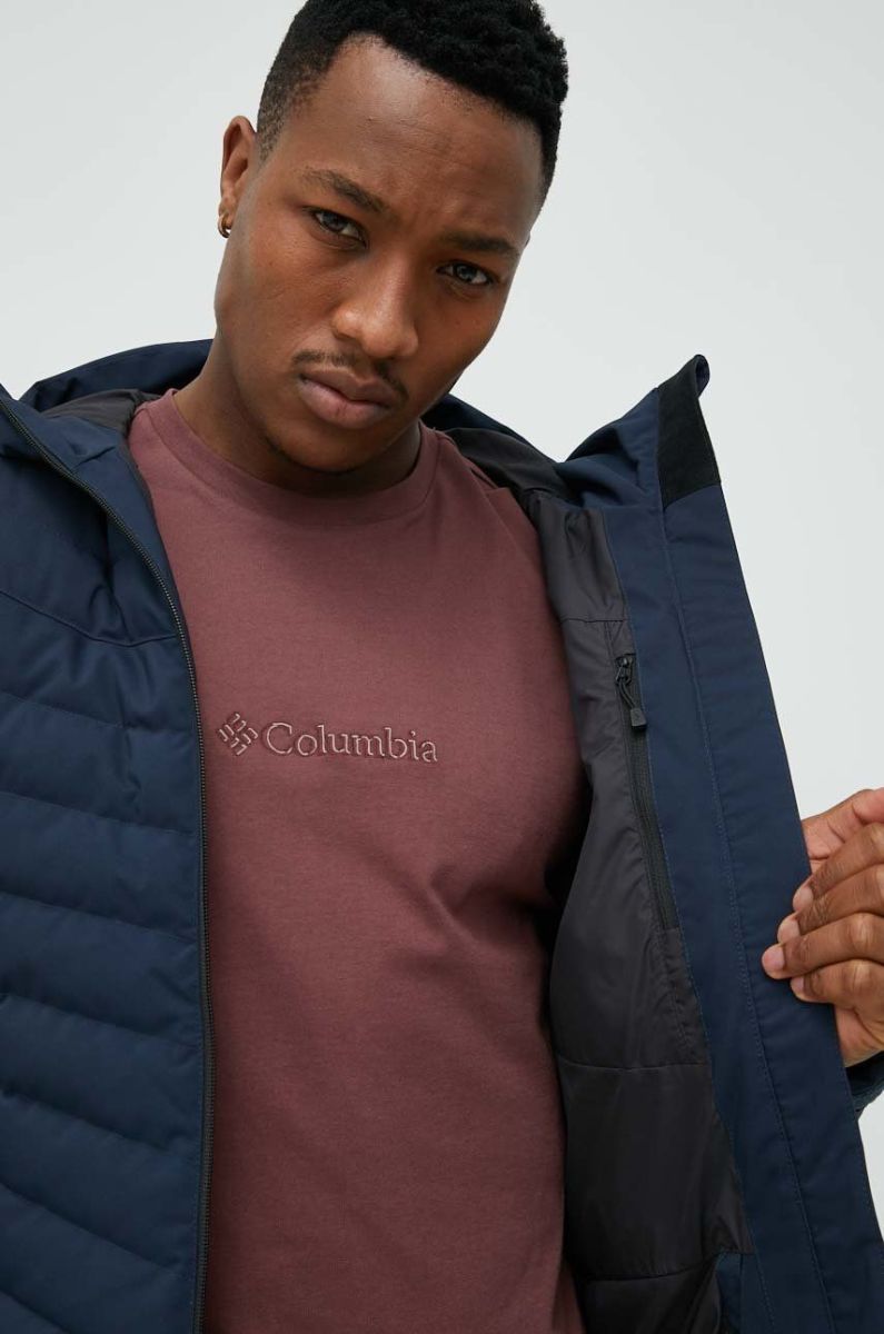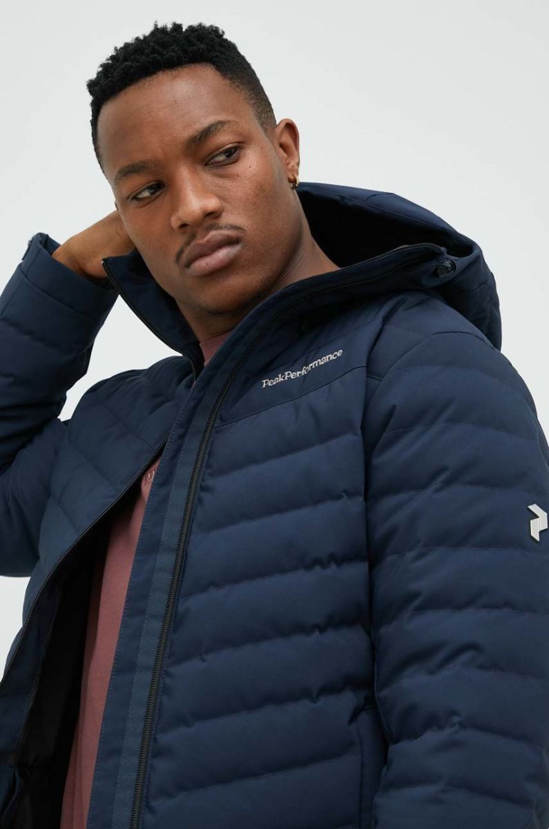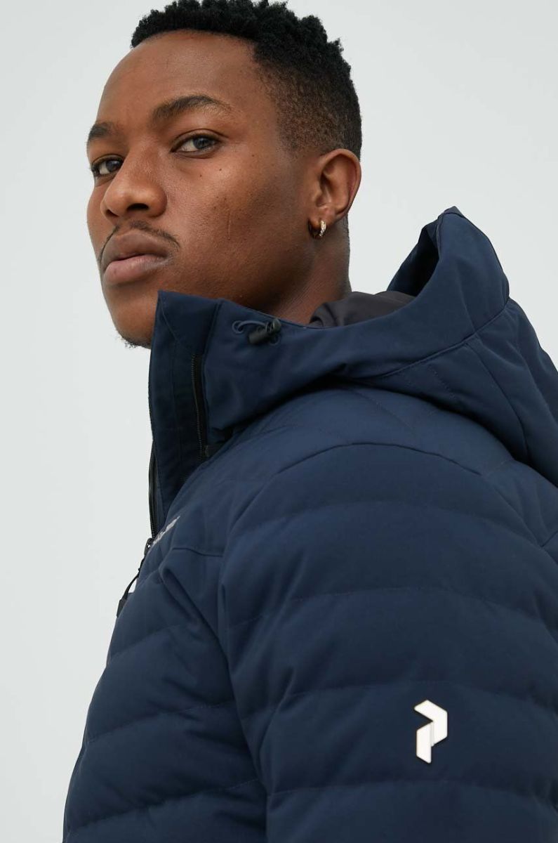 - Високий комір, що закриває підборіддя, та капюшон, який регулюється зав’язками, забезпечують захист від холоду, вітру, снігу та дощу.