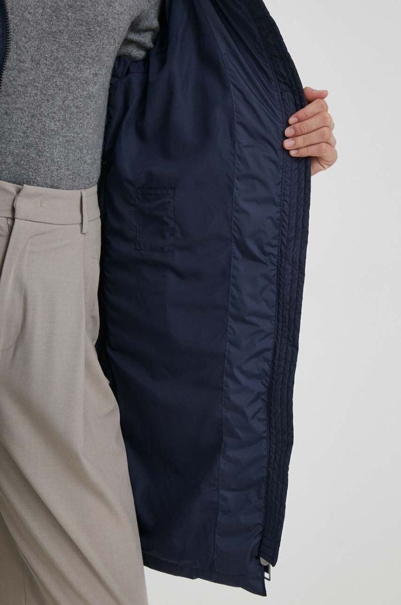 - Завищений комір і незнімний капюшон забезпечують додатковий захист від холоду.