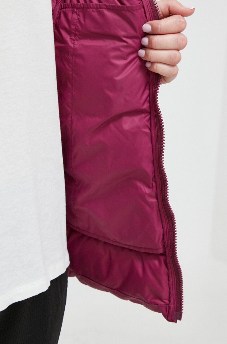 - Завищений комір і незнімний капюшон забезпечують додатковий захист від холоду.