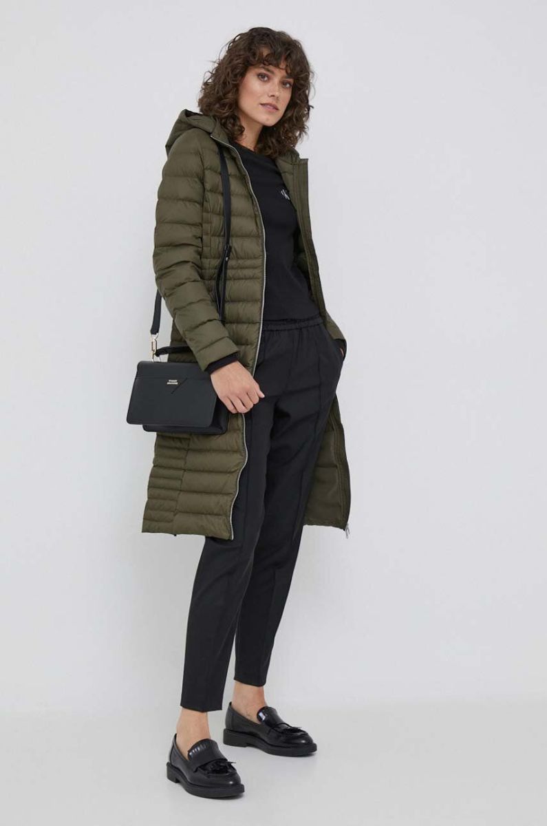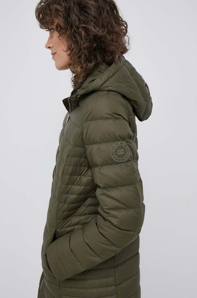 Пухова куртка Tommy Hilfiger жіноча колір зелений перехідна