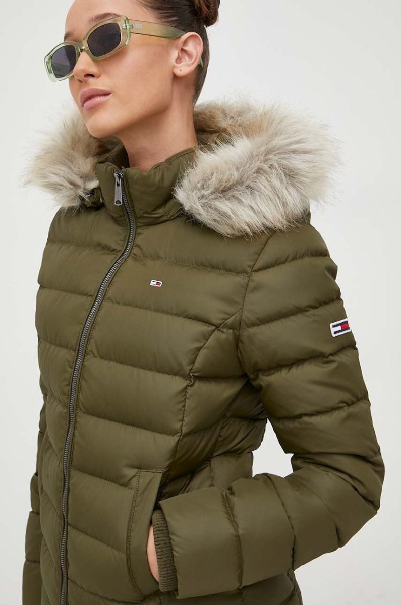 Пухова куртка Tommy Jeans жіноча колір зелений зимова (3499742)
