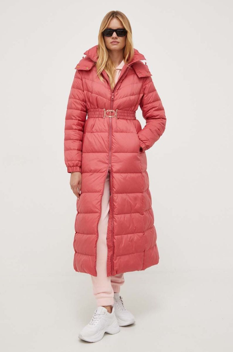 Пухова куртка Twinset жіноча колір рожевий перехідна
