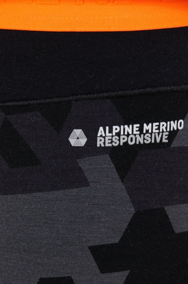 - Модель виготовлена ??з матеріалу Alpine Merino Responsive, який поєднує в собі натуральну мериносову вовну з термореактивними мінералами, які відновлюють інфрачервону енергію від тіла, а потім поступово вивільняють її назад у м’язову тканину. Це призводить до кращого кровотоку, ефективності клітин і вищого рівня кисню в організмі, підвищення ефективності під час діяльності та прискорення регенерації. Високий вміст мериносової вовни робить тканину дихаючою, ізолюючою від холоду та забезпечує приємне відчуття на шкірі.