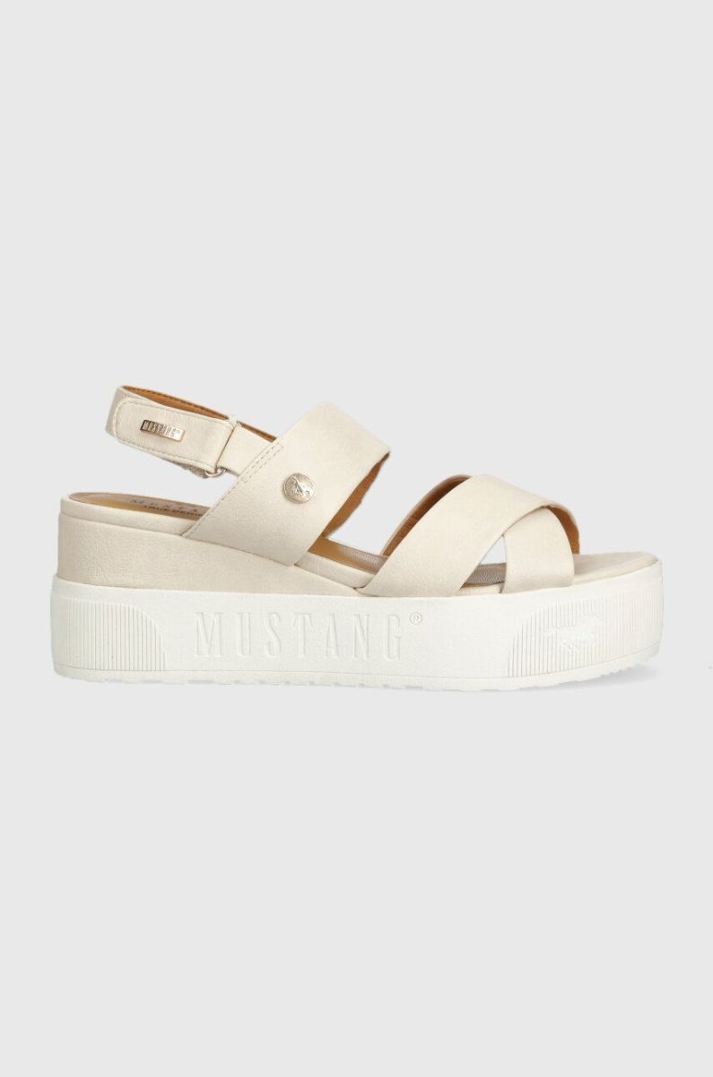 Сандалі Mustang жіночі колір бежевий на танкетці 1459801