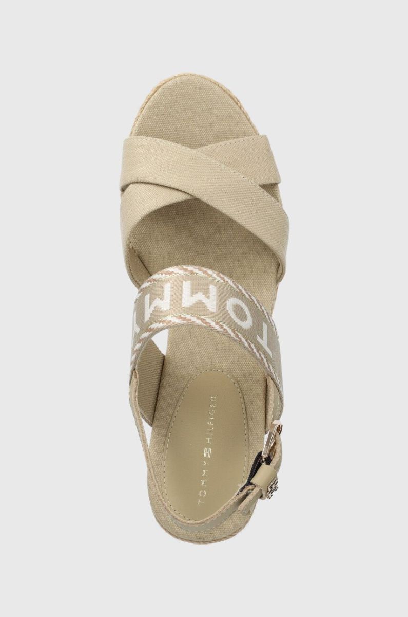 Сандалі Tommy Hilfiger SEASONAL WEBBING MID WEDGE жіночі колір бежевий на танкетці FW0FW07091