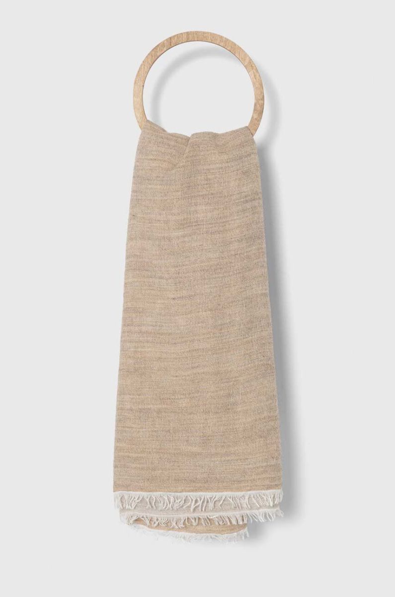 Шаль з домішкою вовни Sisley колір бежевий однотонний