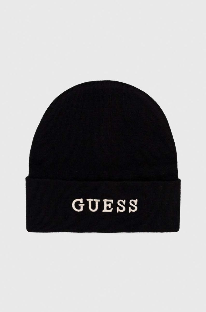 Шапка із колекції Guess. Модель виготовлена із трикотажу із аплікацією.