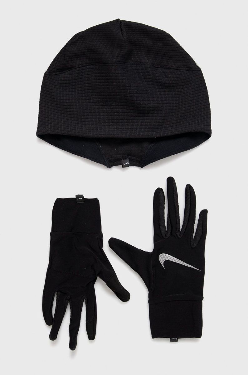 Шапка і рукавички Nike колір чорний з тонкого трикотажу