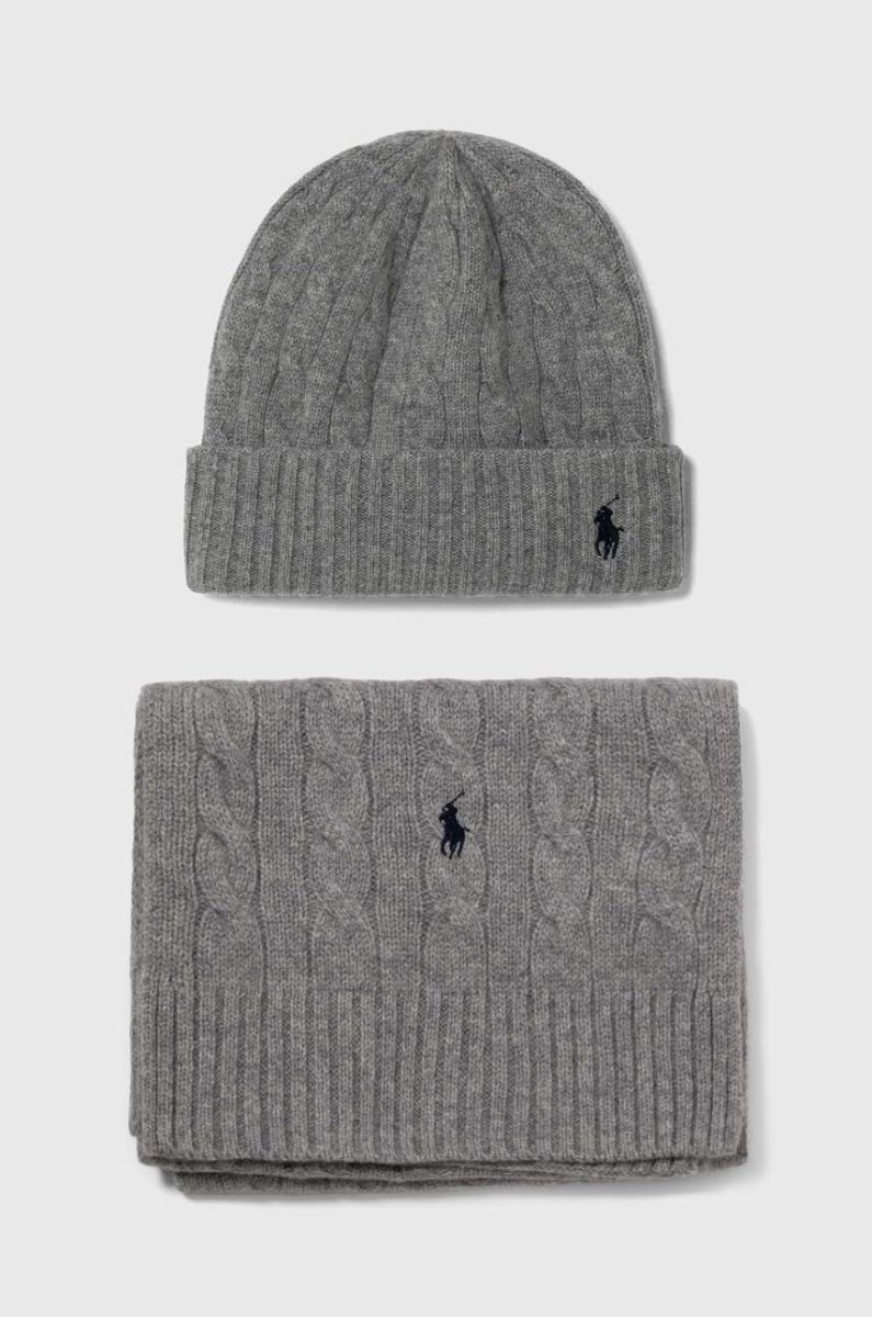 Шапка і шарф з кашеміру Polo Ralph Lauren колір сірий