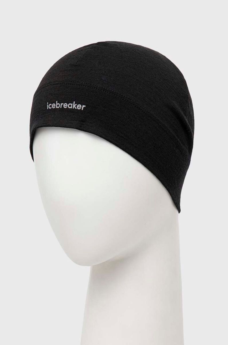 Шапка Icebreaker Oasis колір чорний з тонкого трикотажу вовна