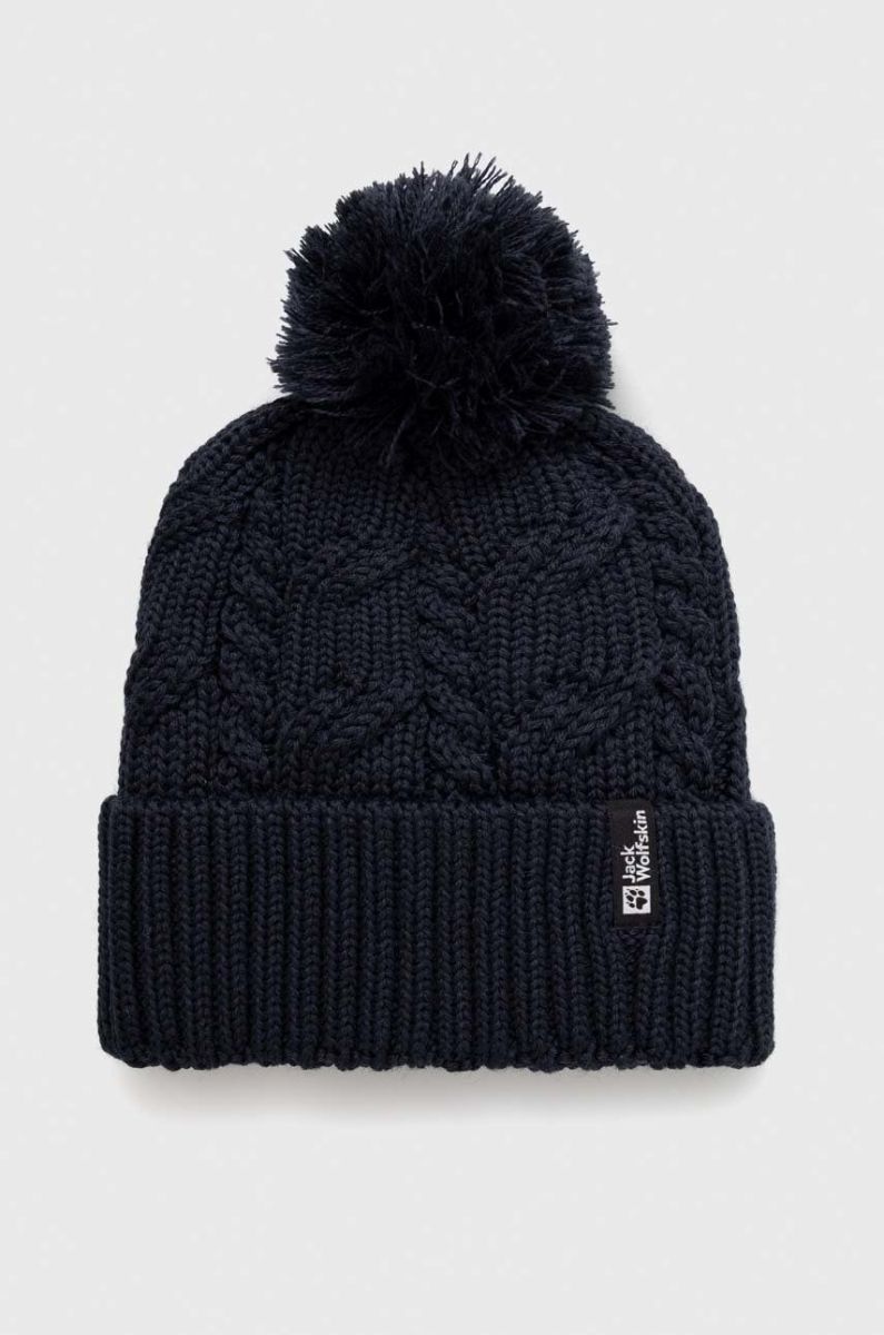 Шапка Jack Wolfskin Pompom колір синій вовна Один розмір