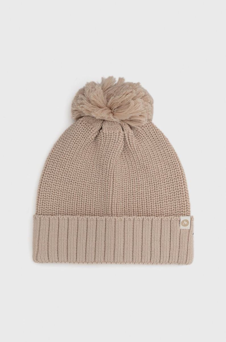 Шапка Marmot колір бежевий з товстого трикотажу Один розмір