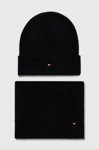 Шапка та шарф з домішкою кашеміру Tommy Hilfiger колір чорний