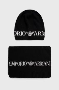 Шапка та шарф з домішкою вовни Emporio Armani колір чорний (2592253) Один розмір