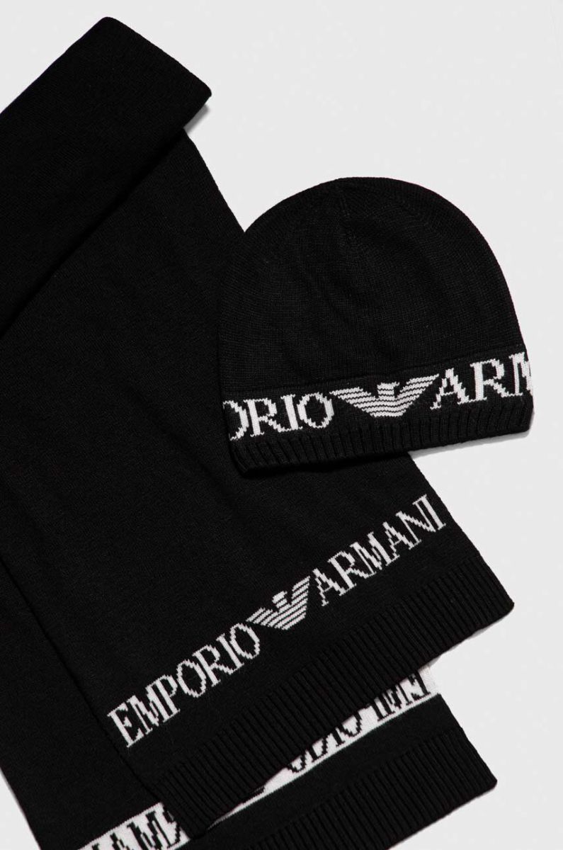 Шапка та шарф з домішкою вовни Emporio Armani колір чорний (3388055) Один розмір
