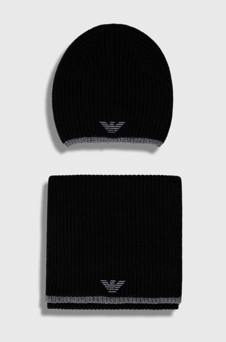 Шапка та шарф з домішкою вовни Emporio Armani колір чорний (3406641) Один розмір