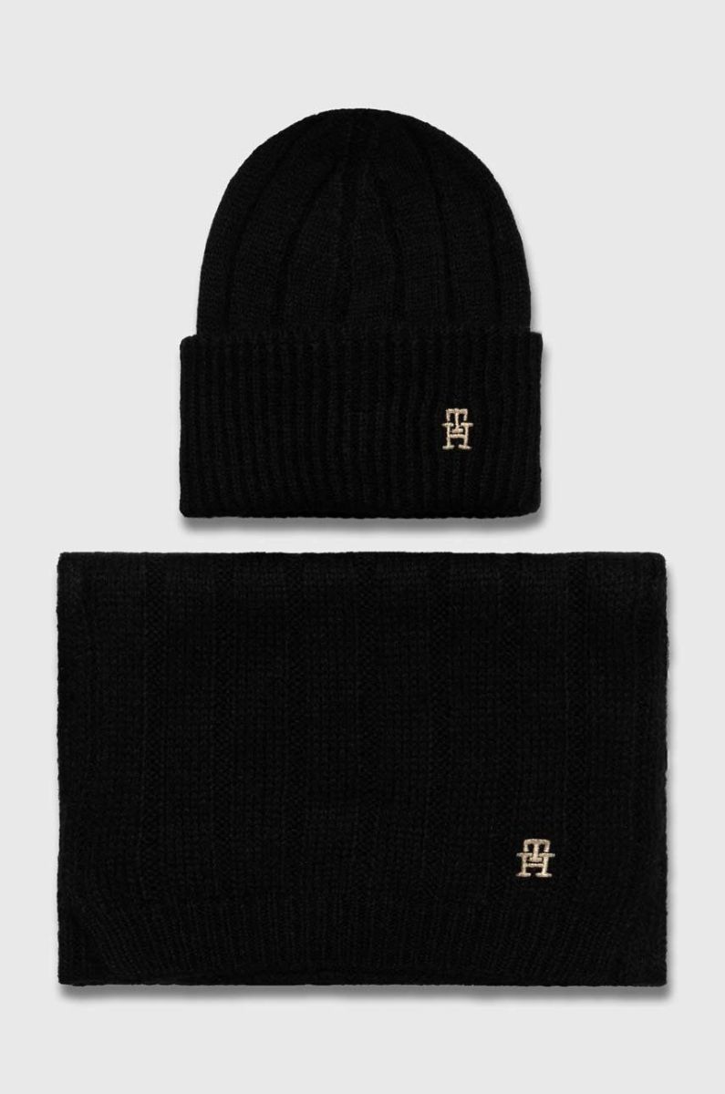 Шапка та шарф з домішкою вовни Tommy Hilfiger колір чорний