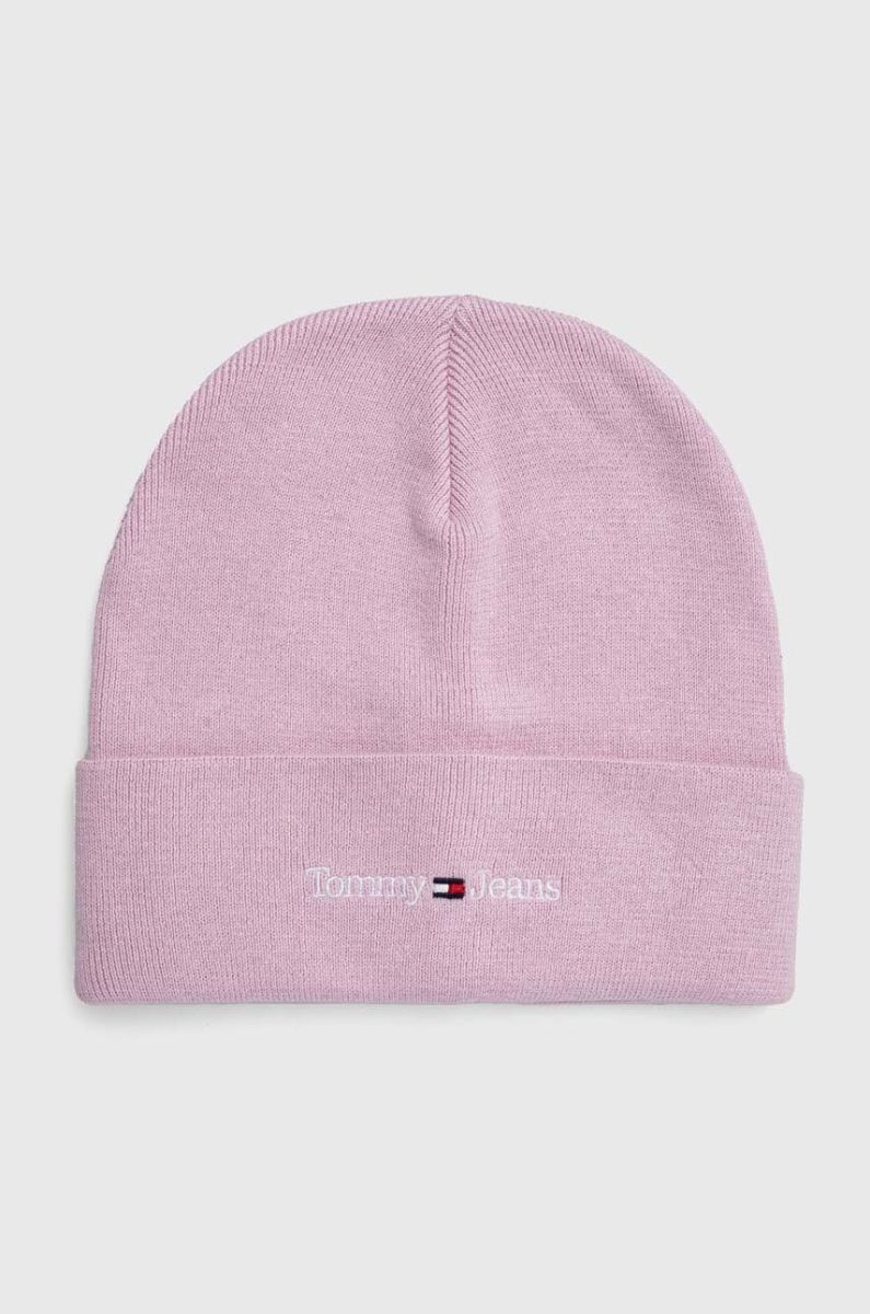 Шапка Tommy Jeans колір рожевий з товстого трикотажу