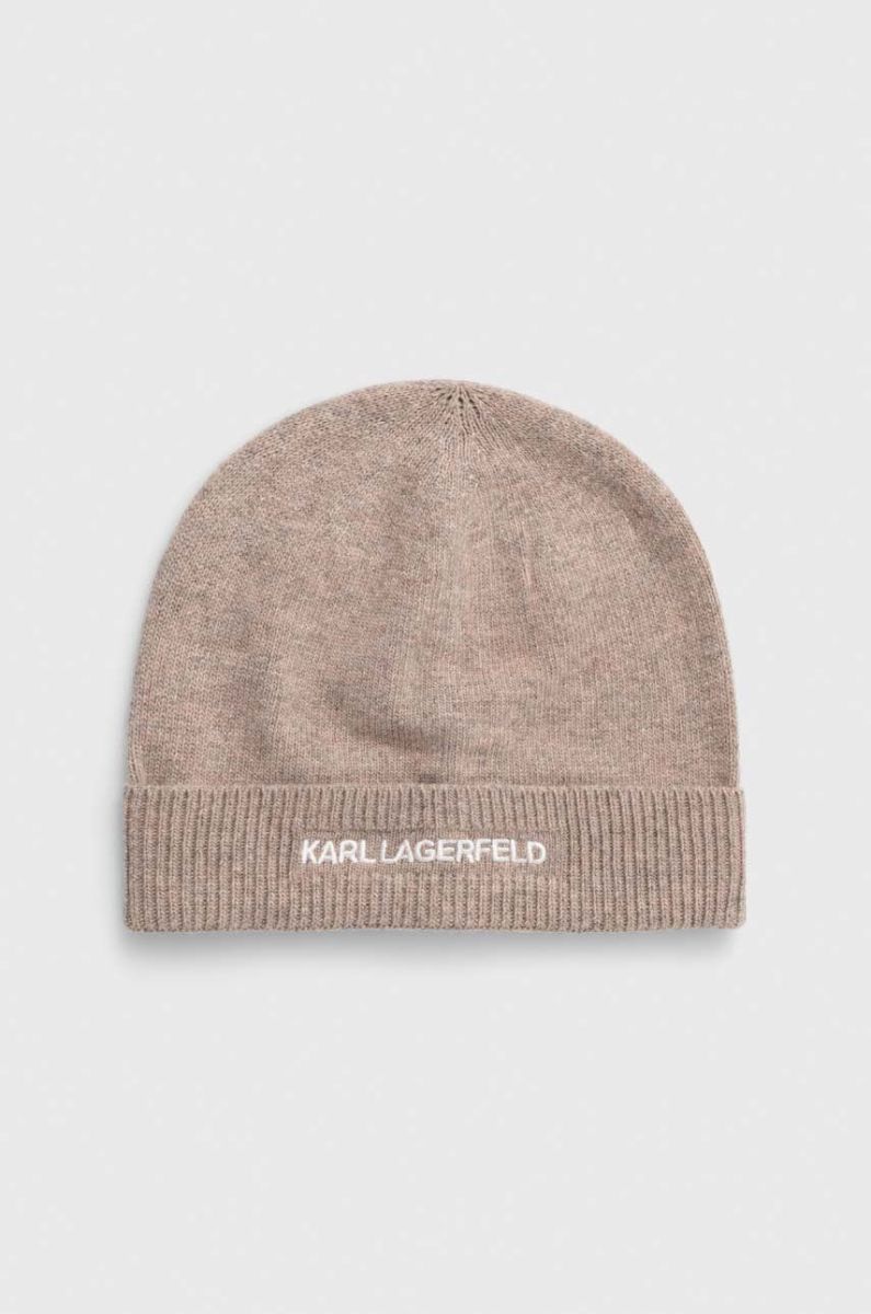 Шапка з домішкою кашеміру Karl Lagerfeld колір бежевий з тонкого трикотажу