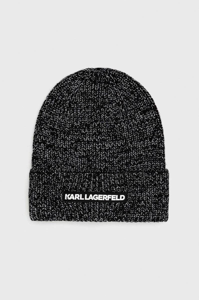Шапка із колекції Karl Lagerfeld. Модель виготовлена із трикотажу з домішкою вовни.