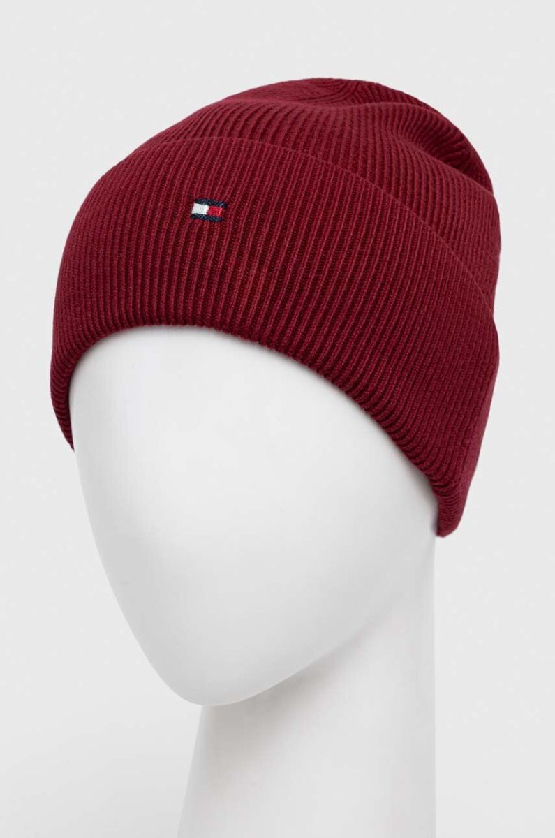 Шапка з домішкою кашеміру Tommy Hilfiger колір бордовий з тонкого трикотажу