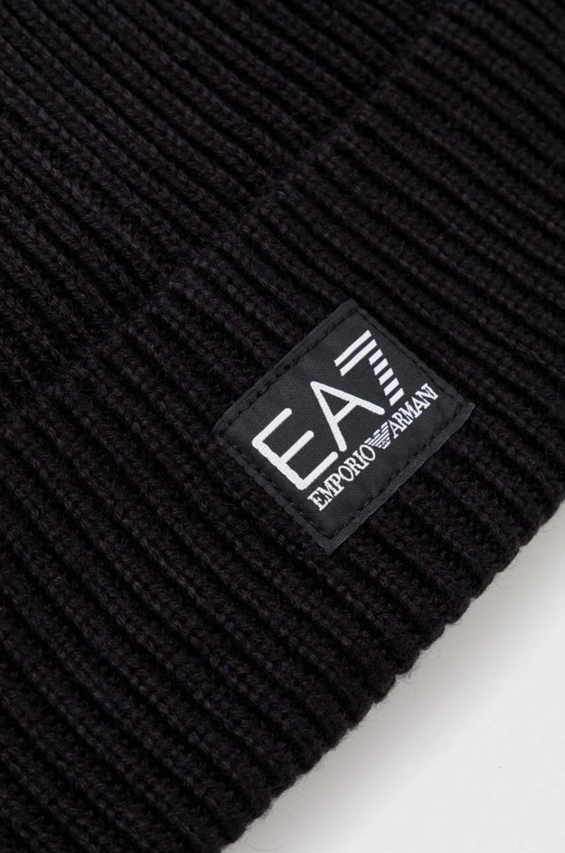 Шапка з домішкою вовни EA7 Emporio Armani колір чорний з товстого трикотажу (3629446) M
