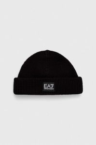 Шапка з домішкою вовни EA7 Emporio Armani колір чорний з товстого трикотажу