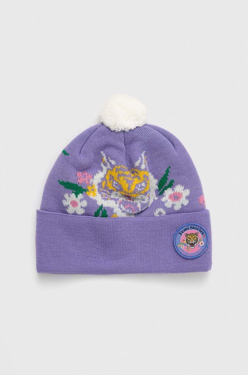 Шапка з домішкою вовни Femi Stories Sweetie Vlt колір фіолетовий з товстого трикотажу