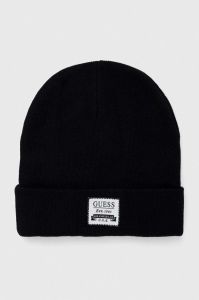 Шапка з домішкою вовни Guess колір чорний з товстого трикотажу Один розмір